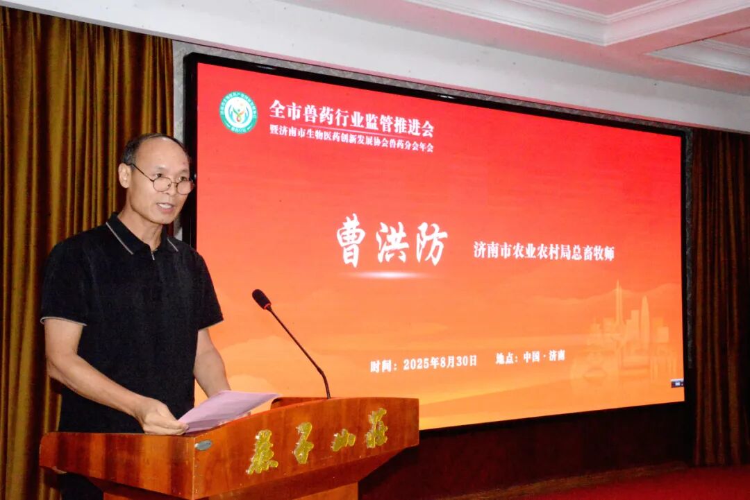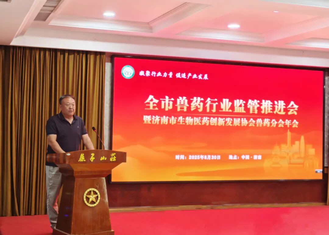 8月30日,以“凝聚行业力量 促进产业发展”为主题的全市兽药行业监管推进会暨济南市生物医药创新发展协会兽药分会2025年年会在济南燕子山庄隆重举行。济南市农业农村局总畜牧师曹洪防、山东省饲料兽药质量检验中心主任杨志昆、市工信局消费产业处处长、一级调研员王业农、市审批局食药卫健处处长王军、市农业农村局饲料兽药处处长张允峰等市局领导以及各区县农业农村局领导、兽药生产企业、会员单位负责人及行业专家等百余人齐聚一堂,共商行业发展大计。